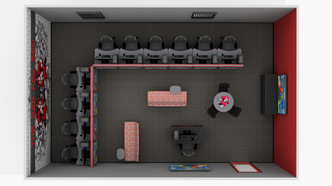 For the Hartsville High lab, we teamed up with our partner MediaTechnologies in order to provide a stylistic environment in which players are able to enhance their skills, in order to practice and compete while maintaining comfort.